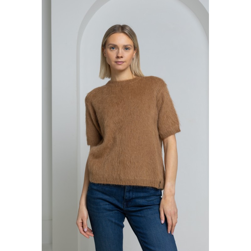 ALPACOS megztinis trumpomis rankovėmis, užburiantis komfortu ir elegancija. „Suri“ alpakų vilnos ir poliamido derinys užtikrina šilumą, lengvumą ir švelnumą, kartu suteikdamas megztiniui ilgaamžiškumo bei praktiškumo. Megztinis yra toks švelnus, kad nedirgina net jautriausios odos. Universalus dydis tinka įvairiems figūros tipams. Drabužio išskirtinumas – ilgo plauko siūlas, suteikiantis jam ypač prabangią išvaizdą. Megztinis pagamintas Peru pagal specialų ALPACOS užsakymą.